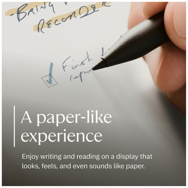 Njut av tillfredsställelsen av att skriva før hand, men på en skärm som ser ut och känns och till och med låter som papper. Den inbyggda läslampan lyser upp skärmen diskret utan att orsaka ansträngning på ögonen.