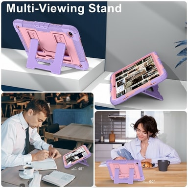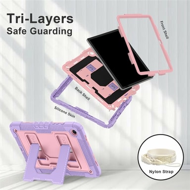 Detta robusta skyddsfodral erbjuder dubbellagers stöttålighet med ett hårt PC-bakstycke och mjuka silikonkanter som skyddar din surfplatta mot fall. Det justerbara inbyggda stället gör det enkelt att välja bekväma visningsvinklar för film eller arbete. Den avtagbara axelremmen ger säker hantering och enkel transport, samtidigt som de precisa utskärningarna ger full åtkomst till alla portar och knappar. Den moderna, texturerade designen kombinerar stil med funktionalitet för ett professionellt utseende.