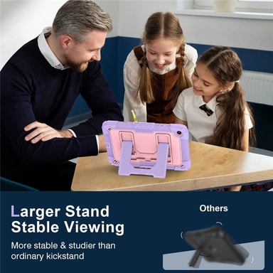 Detta robusta skyddsfodral erbjuder dubbellagers stöttålighet med ett hårt PC-bakstycke och mjuka silikonkanter som skyddar din surfplatta mot fall.Läs mer om produkten