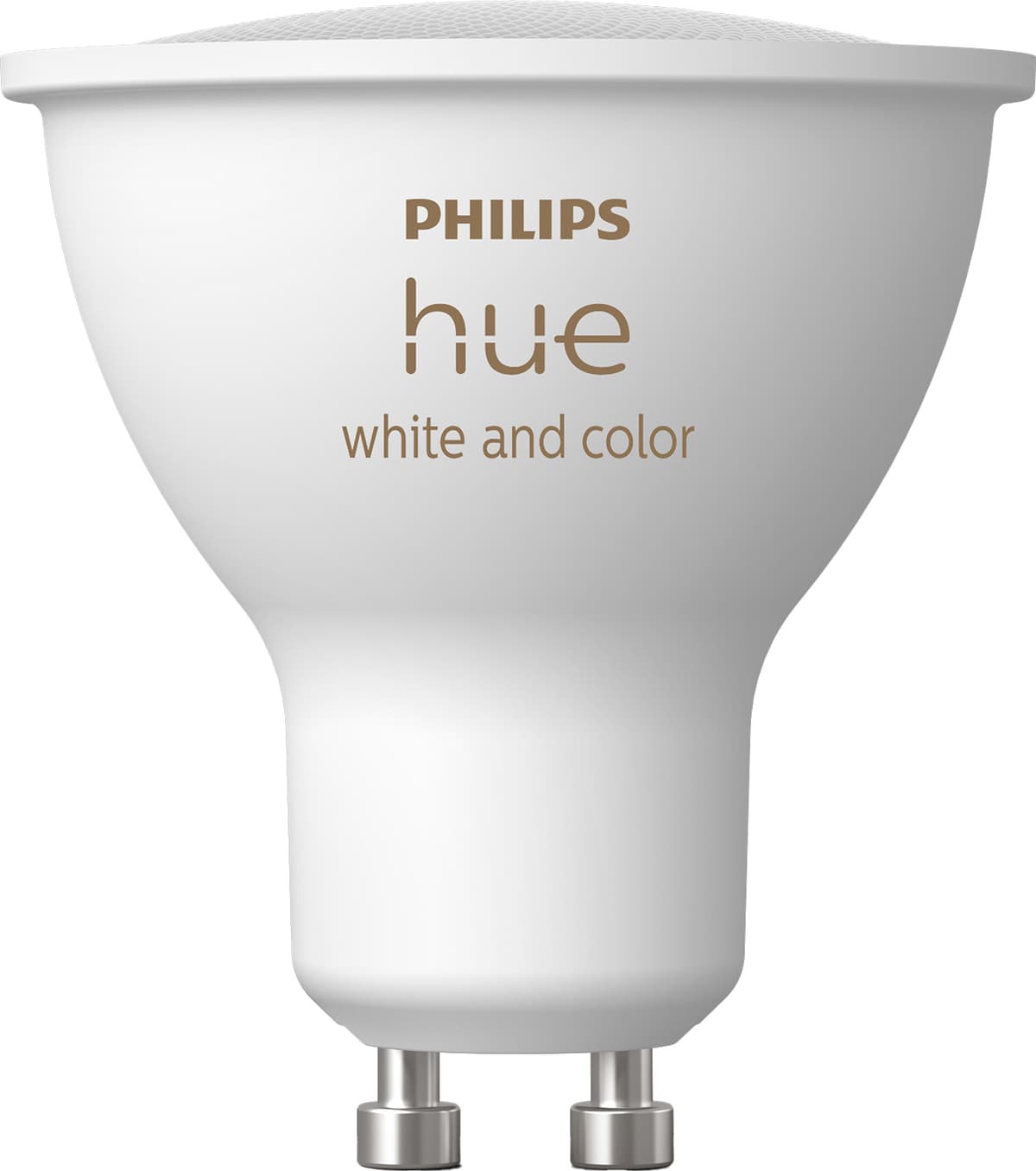 Få tillgång till smarta belysningsfunktioner i dina spotlights med Philips Hue LED-lampa GU10 4,2W. Den kommer med ultralåg nedbländning, en kraftfull ljuseffekt och Bluetooth-anslutning. Anslut till din smartphone med Hue-appen.Läs mer om produkten