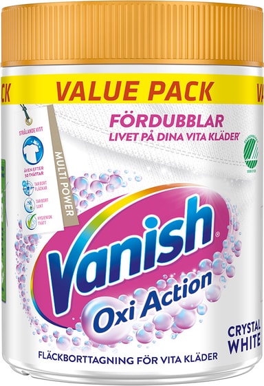 Vanish Oxi Action 42162 tar effektivt bort besvärliga fläckar på dina kläder. På endast 30 sekunder får du ett märkbart reultat.Läs mer om produkten