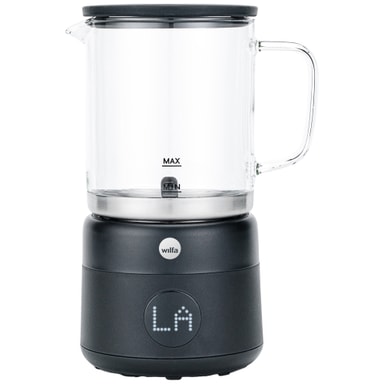 Wilfa Magnetic mjölkskummare MF1B-250 skapar varmt eller kallt skum och värmer mjölk upp till 65°C. Dess avtagbara, diskmaskinssäkra glaskanna rymmer 150 ml skum eller 250 ml uppvärmd mjölk, med automatisk avstängning och en 360° roterande bas.Läs mer om produkten