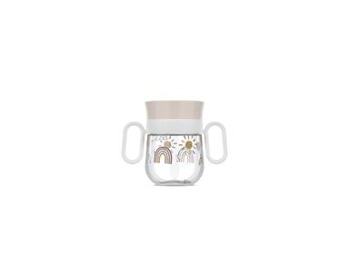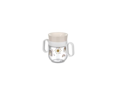 Mio Barnmugg 200 ml är perfekt när barnet ska lära sig att dricka ur en vanlig mugg. Barnet kan dricka ur muggen oavsett hur den hålls, och det genomskinliga locket doserar vätskan så att inte allt kommer ut på en gång. De stora handtagen gör det lättare för små händer att hålla i muggen. Robust, hygienisk och 100 % läckagesäker. Från ca 6 månader. 200 ml. När barnet är redo att dricka ur en vanlig mugg tar du bara av locket. Muggen är enkel att ta isär och diska, och alla delar kan diskas i diskmaskin. Behållaren är tillverkad av klar plast, vilket gör att man enkelt ser hur mycket vätska det finns i den. Mepal Mio är en hel kollektion av smarta pipmuggar, tallrikar och bestick som gör det enkelt för små barn att lära sig äta och dricka själva i takt med att de växer och får fler och fler färdigheter. Varje produkt har specifika funktionella egenskaper som är anpassade efter barnets ålder och utveckling. Produkterna är tillverkade av Tritan, PP, TEP, SAN och rostfritt stål och har ett tydligt designspråk med moderna färger.