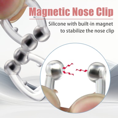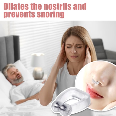 Utvidgar näsborrarna och förhindrar snarkning: Den sfäriska tryckpunkten tillsammans med den magnetiska kraften hos den U-formade näsklämman ser till att det bildas ett konstant lätt tryck mot innandömet av de båda näsborrarna vilket förbättrar utvidgningen av näsborrarna vid andning under sömn. Därigenom motverkas snarkning.