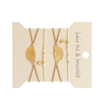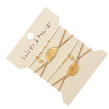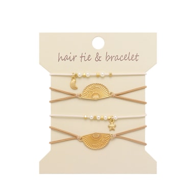 Mångsidig Accessoar: Detta pärlhårband armband övergår sömlöst från en funktionell håraccessoar till en stilfull handledsutsmyckning. Bär det i håret för att säkra din hästsvans eller knut, och när du vill ändra din look, glid det helt enkelt på handleden som ett chic armband. Denna dubbla funktionalitet gör det till ett måste-ha tillskott till din smyckessamling, som erbjuder både praktisk användning och elegans för alla tillfällen. Guldfläktdesignen ger en touch av sofistikering.
