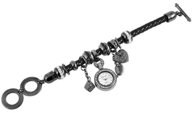 Excellanc damklocka med läderarmband snygg armbandsklocka med armband i imitationsläder. På armbandet hänger en liten berlock med klocka och små amuletter som vackert smyckar din handled.