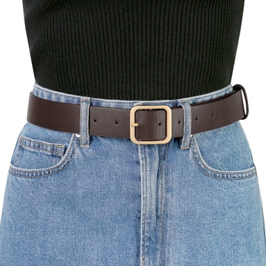 Tillverkad av PU och zinklegering, den är enkel och mångsidig, modern och åldersreducerande. Den fyrkantiga spännedekorationen är unik och det är ett bra modeplagg.