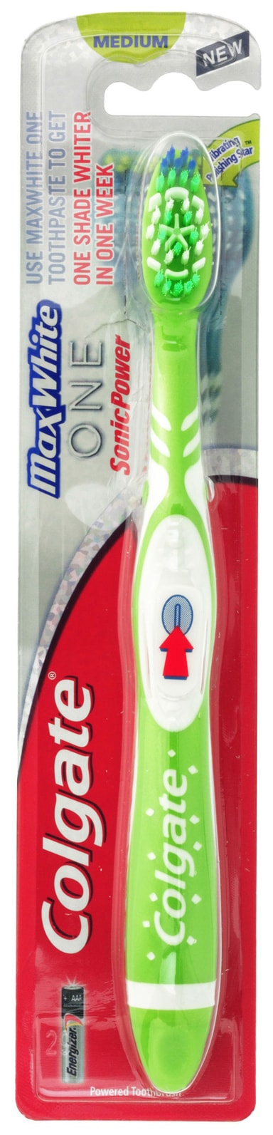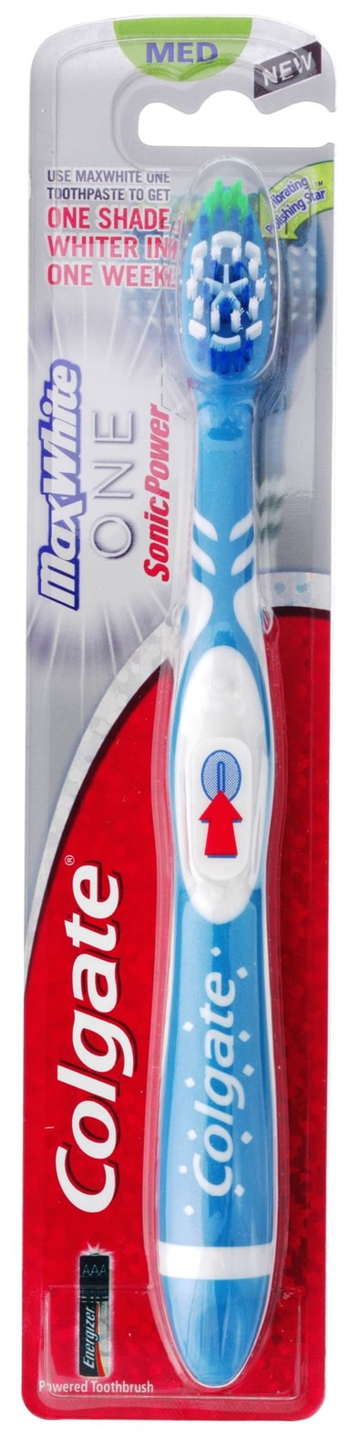 Colgate Max White One Sonic Power är en batteritandborste med soniska vibrationer för en effektiv rengöring av dina tänder.