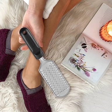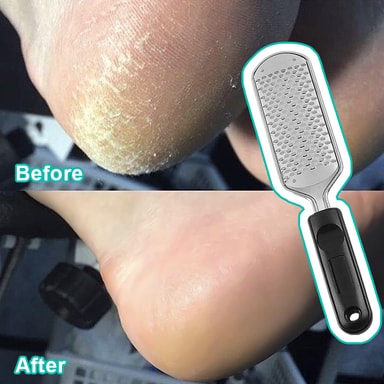 Fotfilen är gjord av högkvalitativt rostfritt stål och har ett halkfritt ergonomiskt handtag. Fotfilen tar enkelt bort död hud och envisa förhårdnader. Motverkar sprickor och hård hud under fötterna och låter dina fötter bli mjuka, lena och vackra igen. Ett oumbärligt pedikyrredskap för bästa fotvård hemma.