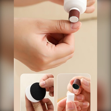 Hygieniska och utbytbara huvuden: Den elektriska fotfilen levereras med 10 utbytbara sliphuvuden och 6 nagelpoleringsringar, vilket garanterar en hygienisk och säker upplevelse för hela familjen. Varje användare kan ha sitt eget sliphuvud, vilket förhindrar korsinfektion och upprätthåller optimal hygien. De utbytbara huvudena är enkla att installera och ta bort, vilket gör det enkelt att växla mellan olika användare eller byta ut slitna huvuden. Denna funktion gör enheten till en praktisk och kostnadseffektiv lösning för fotvård, eftersom du bara behöver byta ut sliphuvudena istället för hela enheten. De utbytbara huvudena är kompatibla med enhetens motor för jämn prestanda.