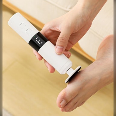Effektiv borttagning av förhårdnader: Denna elektriska fotfil är utformad för att effektivt ta bort förhårdnader och död hud från dina fötter, vilket gör att de känns lena och mjuka. Den kraftfulla motorn arbetar med en hög hastighet på 2400 varv/min, vilket säkerställer snabb och effektiv borttagning utan att orsaka obehag. Det är en perfekt lösning för att uppnå pedikyrresultat av salongskvalitet hemma. Enheten är kompatibel med olika fottyper och hudkänsligheter, vilket gör den till ett mångsidigt verktyg för fotvård. Regelbunden användning främjar friskare hud och förhindrar uppbyggnad av hårda förhårdnader, vilket säkerställer att dina fötter alltid ser ut och känns så bra som möjligt. Den ergonomiska designen möjliggör enkel hantering och exakt kontroll under användning.