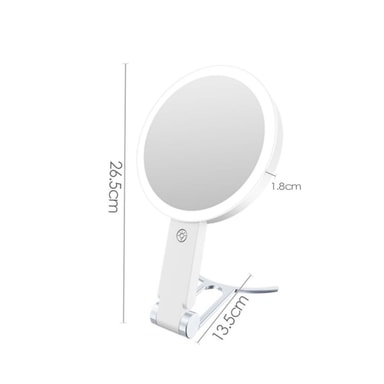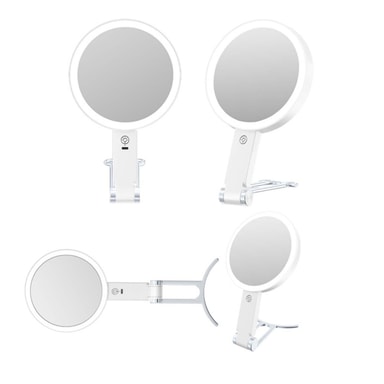 Mångsidiga användningsalternativ: Denna LED sminkspegel erbjuder otrolig mångsidighet med tre distinkta användningslägen. Du kan hänga den på väggen för att spara bänkutrymme, använda den som en fristående bordsmodell för detaljerad sminkapplikation, eller hålla den bekvämt i handen för snabba bättringar när du är på språng. Den vikbara designen gör det enkelt att växla mellan dessa lägen, vilket ger bekvämlighet och anpassningsförmåga för att passa dina behov. Njut av friheten att fullända din look var du än är, oavsett om du är hemma, reser eller bara behöver en snabb koll. Denna spegel är kompatibel med en mängd olika miljöer och perfekt för att uppnå felfria resultat. Den portabla och vikbara designen säkerställer att den enkelt får plats i vilken resväska som helst.
