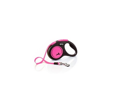 flexi New Neon infällbar bly storlek S , Tejp 5 m, för hundar upp till 15 kg, svart/neonrosa