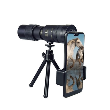 Handsfree-Visning: Det integrerade stativgränssnittet möjliggör enkel montering på det medföljande stativet, vilket ger stabil, handsfree-visning. Detta är särskilt användbart för längre visningssessioner eller när du tar foton och videor med din smartphone. Stativet säkerställer en stadig bild, även vid höga förstoringar. Perfekt för stjärnskådning, fågelskådning eller någon aktivitet där stabilitet är nyckeln. Handsfree-funktionen gör den kompatibel med olika aktiviteter, så att du kan fokusera på att njuta av utsikten.