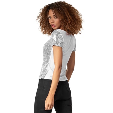 tectake Kortärmad tröja med paljetter XL, silver