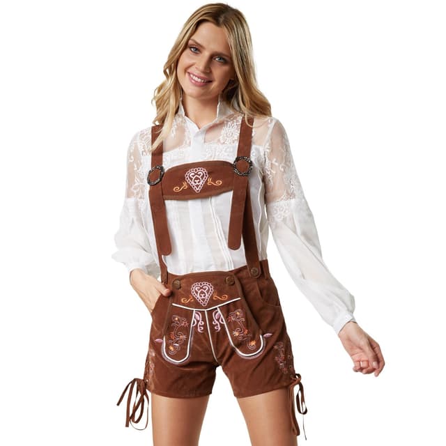 Dessa lederhosen kombinerar traditionell charm med modern elegans och ger din traditionella outfit en elegant touch. Med sin klassiska traditionella skärning och färgglada, fina broderi är de den perfekta följeslagaren för oktoberfest eller maskerader. Oavsett om de kombineras med en dirndlblus eller en enkel t-shirt så kommer dessa ""läderbyxor"" alltid att skapa en perfekt outfit.