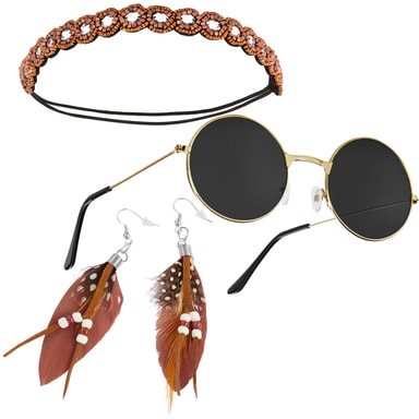 Dyka in i flower power-tiden med damkostymen hippieväst! Detta set är det perfekta valet för alla som älskar den avslappnade stilen från 60- och 70-talet. Den bruna västen kompletteras med matchande accessoarer som solglasögon, ett hårband och stiliga örhängen som fulländar din look.