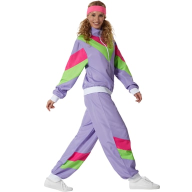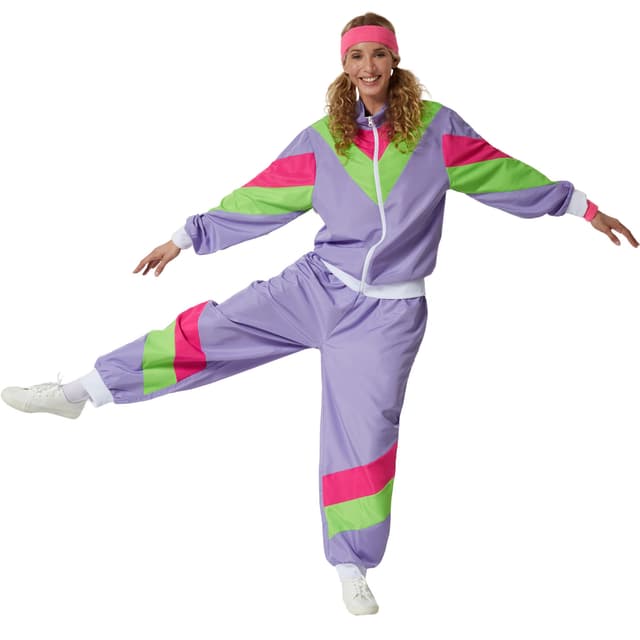 tectake Maskeraddräkt träningsoverall retro 80- och 90-tal dam XL, lila