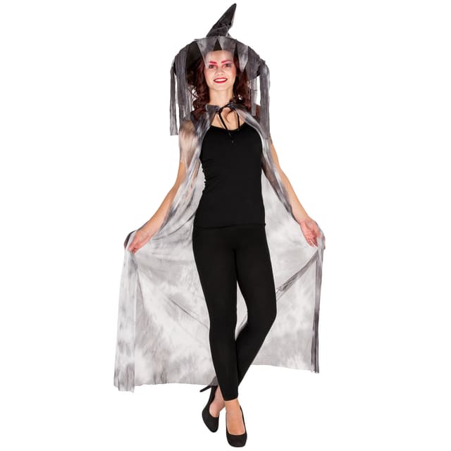 Capens vackra, dimmiga mönster gör designen unik och understryker den mystiska karaktären hos denna dräkt. Den distinkta spetsiga häxhatten kompletterar looken perfekt och ger dig den där typiska häxkarisman som kommer att locka beundrande blickar på vilken fest som helst.