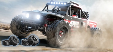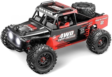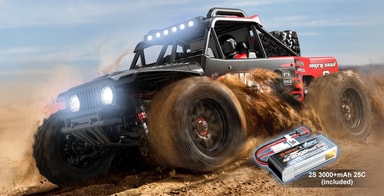 Bygget for fart og spenning! Med et robust chassis i 6061-aluminium, forsterket metallbøyle og godt beskyttet mottaker. Metallaksler, tannhjul og justerbare oljefylte støtdempere sikrer jevn og stabil kjøring i krevende terreng. Under det tøffe karosseriet med kraftig LED-lys sitter en børsteløs 2852, 4400kV motor og en 45A ESC, som sammen med 2S LiPo-batteriet gir hastigheter på opptil 45 km/t. Ønsker du enda mer fart, kan bilen oppgraderes til 3S og få en toppfart på opptil 67 km/t.