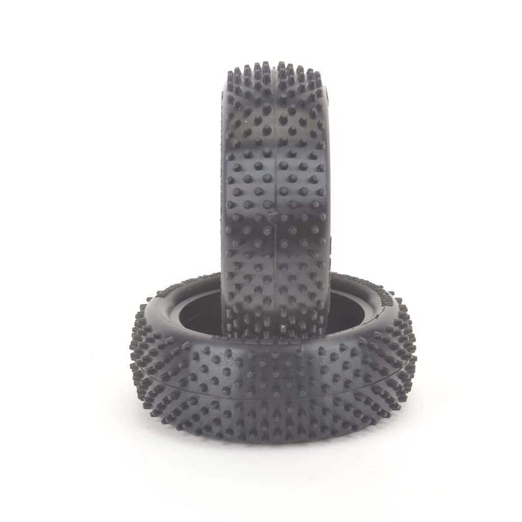 Schumacher Mezzo för lång konstgräs och lägre grepp. Lätt att klippa för att minska greppet. Gult rekommenderas för torr användning, silver för vått och blått för lång hållbarhet. För 2WD rekommenderas U6770 Low Profile Cut Stagger som ett framdäck när du har en Mezzo bak.