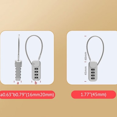 Förbättrad säkerhet: Detta mini kombinationskabellås ger ett extra lager av säkerhet för dina tillhörigheter. Tillverkat av högkvalitativ zinklegering, erbjuder det robust skydd mot stöld. Stålvajern är utformad för att motstå skärning och manipulering, vilket säkerställer att dina föremål förblir säkra. Perfekt för att säkra ryggsäckar, resväskor, pennfodral och andra små föremål, detta lås ger dig sinnesfrid oavsett om du reser, är i skolan eller bara är på språng. Dess kompakta storlek gör det enkelt att bära, medan dess starka konstruktion säkerställer långvarig prestanda.