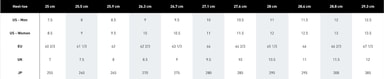 | Storlek | 40, 40-2/3, 41-1/3, 42, 42-2/3, 43-1/3, 44, 44-2/3, 45-1/3, 46 |