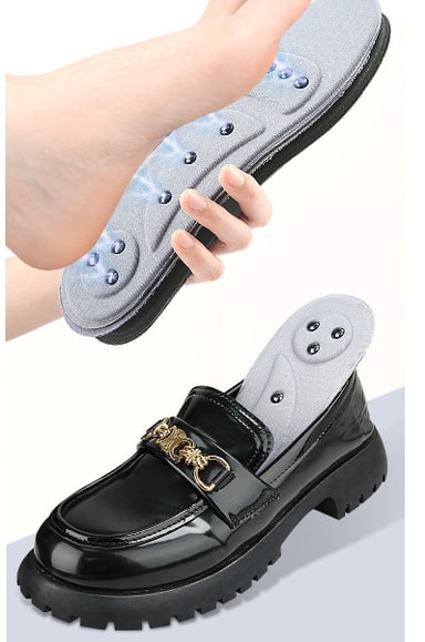 Riktat bågstöd och lättnad: Med inbyggda magneter som är strategiskt placerade i hela innersulan, ger dessa sulor riktat stöd till dina fotvalv. Detta hjälper till att lindra obehag, förbättra balansen och främja en mer naturlig gång.