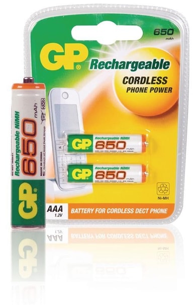 GP laddningsbara AAA-batterier. Passar särskilt för sladdlösa telefoner. GP No.: 65AAAHC Kapacitet:650 mAh Spänning:1.2 Volt System:NiMH IEC-kod:R03 Andra:AAA, Micro, Mini Penlite