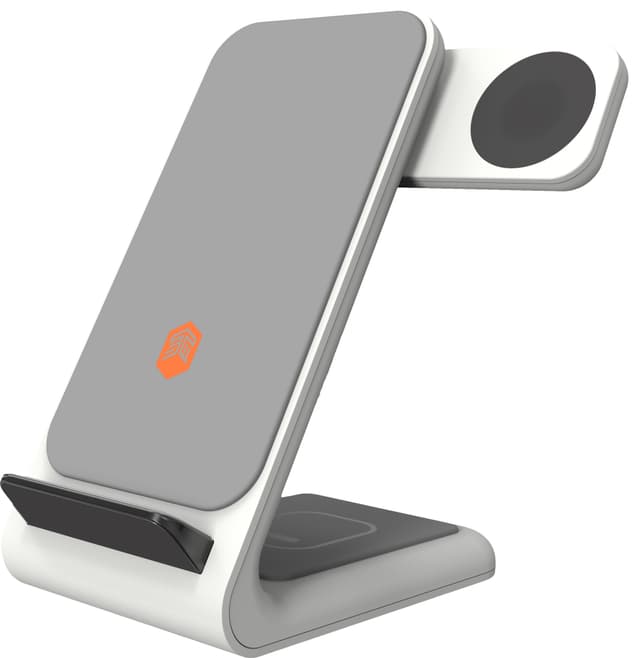 STM ChargeTree Swing trådlös laddare skapar ett bekvämt utrymme för tre enheter och laddar dem samtidigt. Detta tunna, trådlösa laddare laddar din iPhone med aktiverad trådlös laddning, AirPods eller AirPods Pro och alla serier av Apple Watches. Den praktiska svängarmen gör att du kan ladda din Apple Watch och fortfarande se deras urtavla under laddning. Laddaren är QI-certifierad och kompatibel med de flesta iPhone-skal med upp till 5 mm tjocklek (ej metall) och med AirPods trådlösa laddningsfodral. Förpackningen levereras med en 1 m lång USB-C-kabel.