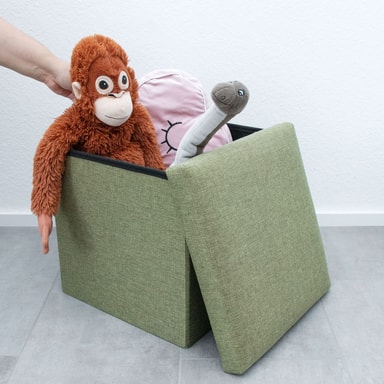 DESIGN: Den moderna och individuella designen i linnetyg på utsidan och mjukt tyg på insidan av denna praktiska hopfällbara låda / pall gör att den ser mycket elegant ut och garanterat kommer att bli ett blickfång!
