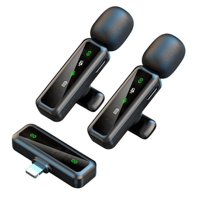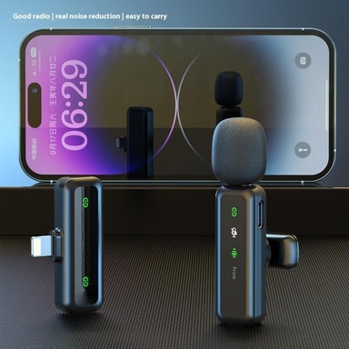 H63 2.4G trådlös Lavalier-mikrofon för smartphones Live Streaming Brusreducerande mikrofon, 2 sändare + 1 mottagare - iP-kontakt【Trådlös bekvämlighet】 2.4G trådlös teknik möjliggör sömlös anslutning med en överföringsräckvidd på upp till 20 meter i öLäs mer om produkten