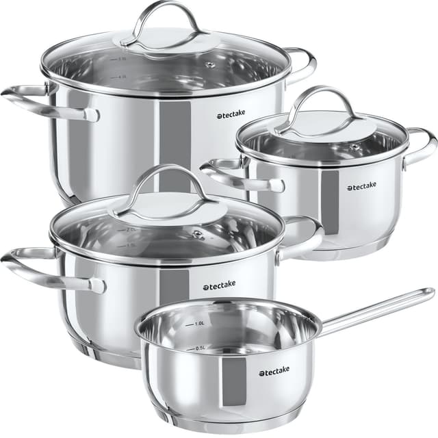 tectake Kokkärlsset Varese, 15 delar i aluminium med glaslock - svart