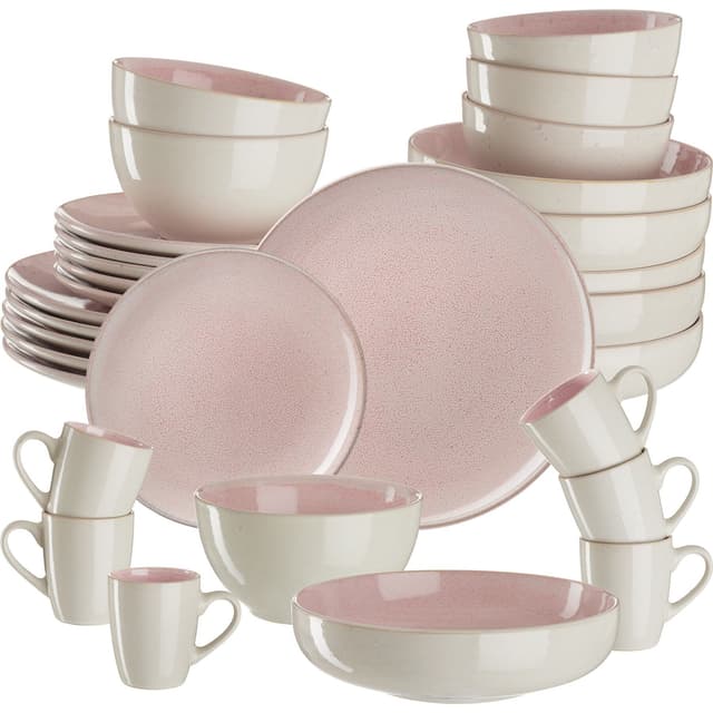 tectake Porslinsset Mare i stengods, för 6 personer 26.5 x 26.5 x 2.5 cm Rosa