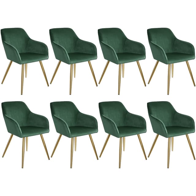 Matstol 4 st. mörkgrön sammetsklädsel med metallben