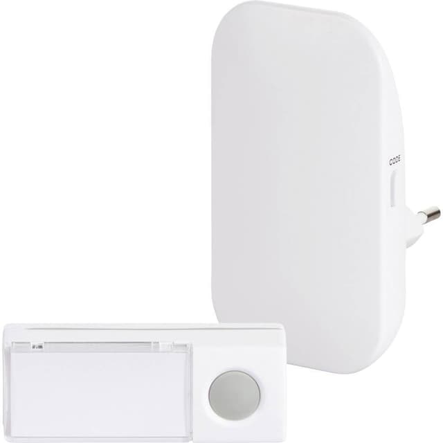Byron DB411E Trådlös dörrklocka + Plug-In mottagare, 50 m räckvidd, Vit