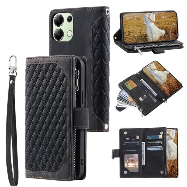 För Xiaomi Redmi 15C Zipper Wallet Case Rhombus Stitching Line Telefonfodral