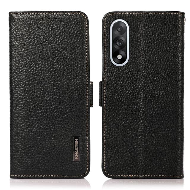 SKALO OnePlus Nord 5 KHAZNEH Litchi Äkta Läder Plånboksfodral - Svart