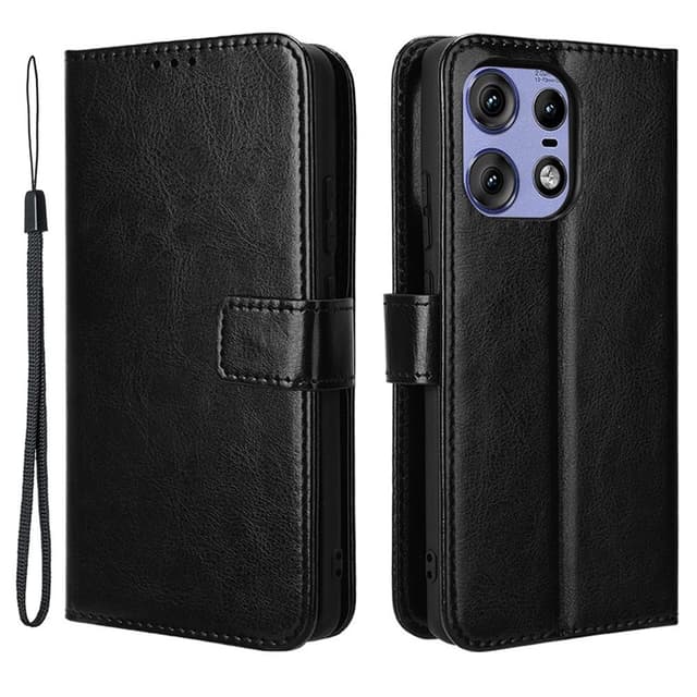 SKALO Motorola Edge 50 Pro 5G Crazy Horse Plånbok PU Läder - Svart