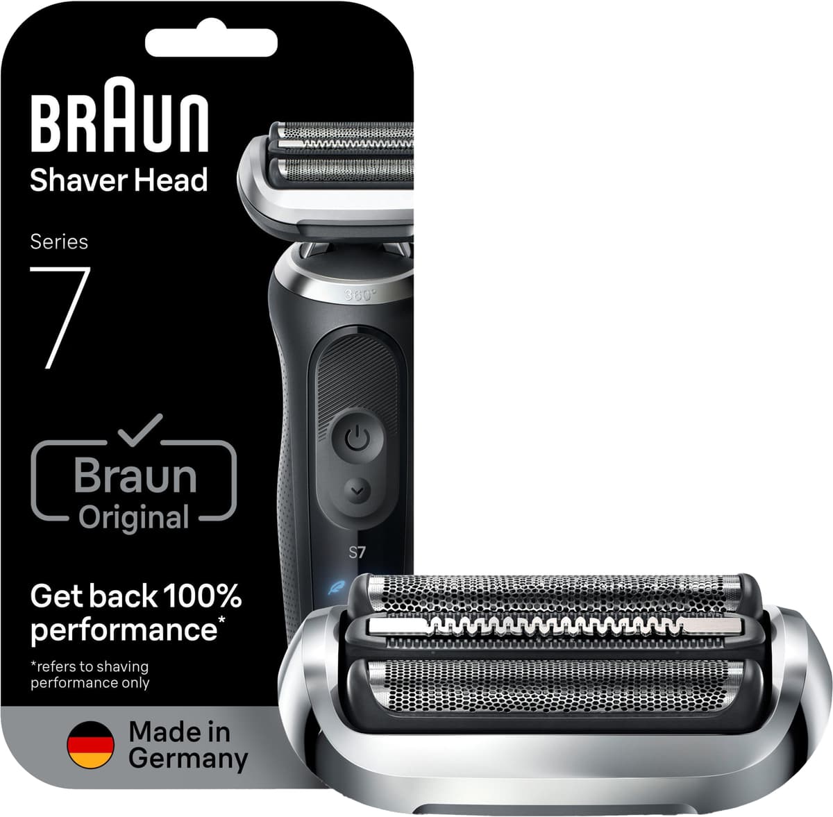 Braun 74S KeyPart reservskärhuvud 189066 passar Series 7-rakapparater (70, 71, 72) och återställer full prestanda med ett 360° flexibelt huvud och tre adaptiva skärblad. Dess foliedesign skyddar huden och den är enkel att byta ut med ett klick.Läs mer om produkten