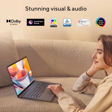 Asus Zenbook A14 UX3407 X2E/32/1TB/OLED 14" Copilot+ PC erbjuder gott om funktioner och prestanda för att enkelt klara av alla dina arbets- eller skoluppgifter och ha din favoritunderhållning alltid till hands. Designad för den moderna professionella användaren kombinerar denna bärbara dator kraften i AI med förstklassig hårdvara för att leverera en oöverträffad upplevelse. Den bärbara datorn har en WUXGA OLED-skärm som ger dig utmärkt bildkvalitet och en fantastisk tittupplevelse. Dess Qualcomm Snapdragon-processor med 18 kärnor och en NPU kompletteras av 32GB snabbt LPDDR5X RAM-minne och 1TB M.2 SSD-lagring för sömlös drift.