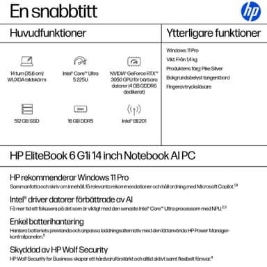HP Elite Laptop-datorer erbjuder kraftfulla, säkra och managerbara lösningar för krävande arbetsuppgifter i snygg design som är lätta att bära med sig.Läs mer om produkten