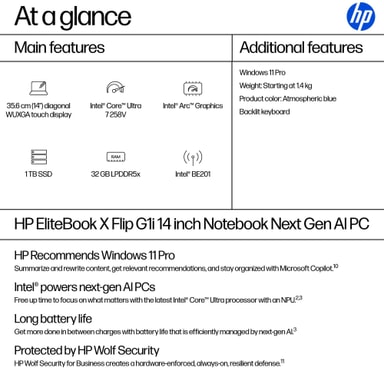 Driv företaget framåt med AI som använder era egna data för att fatta strategiska affärsbeslut. Upptäck vad ni kan göra med AI-applikationer[4], avancerade samarbetsfunktioner, fyra flexibla användningslägen och optimerad batteritid på nästa generationens HP EliteBook X Flip G1i AI-PC.