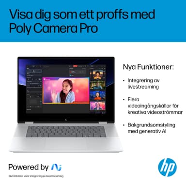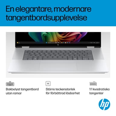 Framtiden har kommit med HP OmniBook X Flip 16" Next Gen AI PC. Oavsett om du vill bli underhållen eller arbeta kreativt har denna AI-drivna dator processorhastigheten och prestandan för att förverkliga det. Utrustad med en bländande 16-tums 2,8K OLED-skärm och möjligheten att visa den platt, hopfälld eller vänd, kan du njuta av livfulla färger med hög kontrast i vilken vinkel som helst. Tillverkad av elegant, återvunnen metall1 och designad med ett bakgrundsbelyst tangentbord med stora tangenter, är din framtida dator ljus.