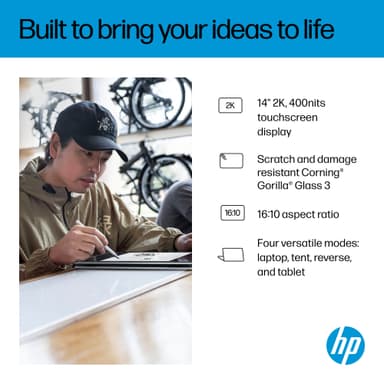AMD Ryzen™ 7 AI-processor HP OmniBook X Flip drivs av AMD Ryzen™ AI 7-processorn med 8 kärnor och en maximal turbofrekvens på 4,8 GHz. Denna konfiguration säkerställer smidig och effektiv prestanda för olika program, från produktivitetsmjukvara till multimediauppgifter. Den integrerade AMD Radeon™ 860M-grafikarkitekturen stödjer delad grafik, vilket gör den kapabel att hantera vardagliga bilduppgifter med lätthet.