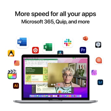 Denna MacBook kommer med Apples specialdesignade Apple M2 system-on-chip med åttakärnig CPU och tiokärnig GPU som är byggda på en revolutionerande 5nm-process som gjorde det möjligt att sätta in 20 miljarder transistorer för en otrolig prestanda och strömeffektivitet. Den har även en Neural Engine och en enhetlig minnesarkitektur så att en enda pool av cacheminne kan nås över chip direkt. Gör dig redo för blixtsnabb bild/videobearbetning, rendering och en fördjupande spelupplevelse. MacBook Pro innehåller en inbyggd fläkt, så systemet kan bibehålla samma prestanda över längre perioder medan temperaturen hålls nere.