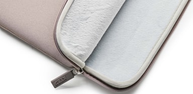 Insidan av KEEP Neoprene laptop-fodralet har ett mjukt foder som lägger till ett extra lager av skydd för din bärbara dator. Detta foder hjälper till att förhindra repor och repor som kan uppstå när du sätter i och tar bort din enhet.