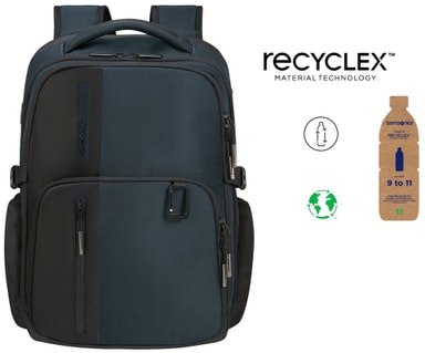 Den blå business-ready Samsonite BIZ2GO 15,6" ryggsäcken för bärbar dator är gjord av återvunna plastflaskor vilket gör den till ett perfekt miljövänligt alternativ.Läs mer om produkten