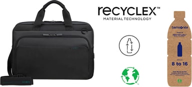 Samsonite MySight datorväska är lämplig för vardaglig användning på kontor tack vare dess smarta interiör, med ett fack för powerbank och ett vadderat huvudfack för 15,6 tum stora bärbara datorer. Den har en USB-port och en Easy Pass-funktion så att du kan ladda din enhet bekvämt. Väskan är optimal att ha med vid resor, med en Smart Sleeve-design med ett integrerat band som kan fästas på din rullväska via handtaget. Allt detta kommer i en stilren och modern design tillverkad av återvunnet material.