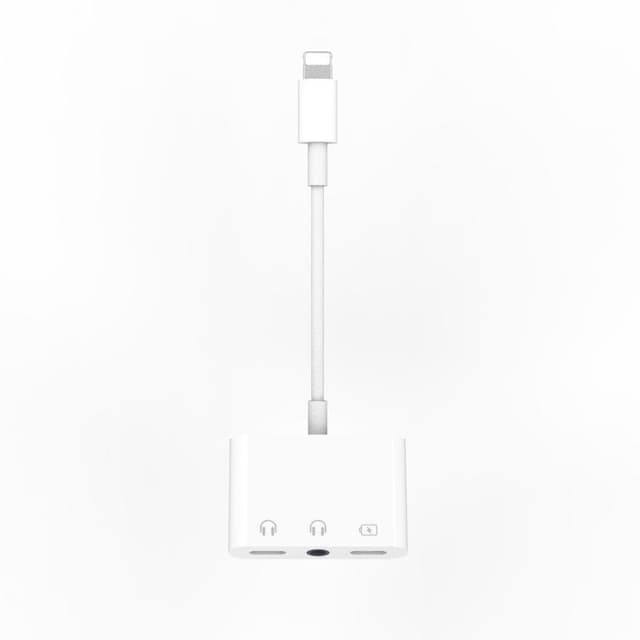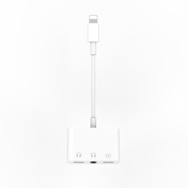Med en ljudfördelare kan du koppla in hörlurar med olika uttag i din telefon. Utgångsporten är en Lightning-kontakt och är kompatibel med iPhone och iPad, ingångsportarna har stöd för både 3.5 mm standarduttag samt två stycken Lightning-uttag. Adaptern gör att du kan prata i telefon med hörlurarna samtidigt som du laddar telefonen. Standardutgången för ljud stöder musikfunktionen och Lightning-uttagen stöder laddning, lyssna på musik samt prata i telefon.